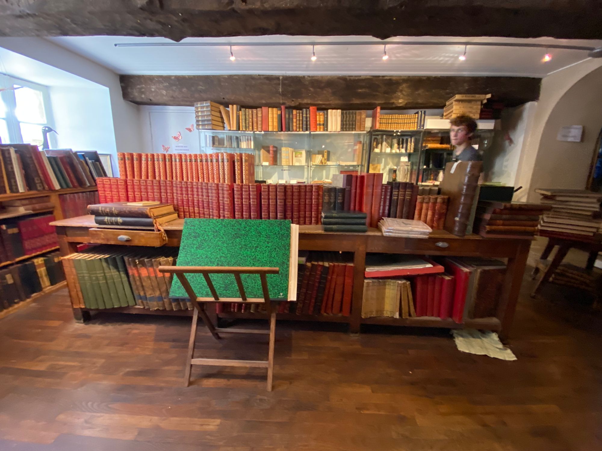 Bécherel's largest bookstore, Abraxas-Libris, is really three storefronts, together offering some 70,000 books. The main store is massive, rambling over a dozen rooms: