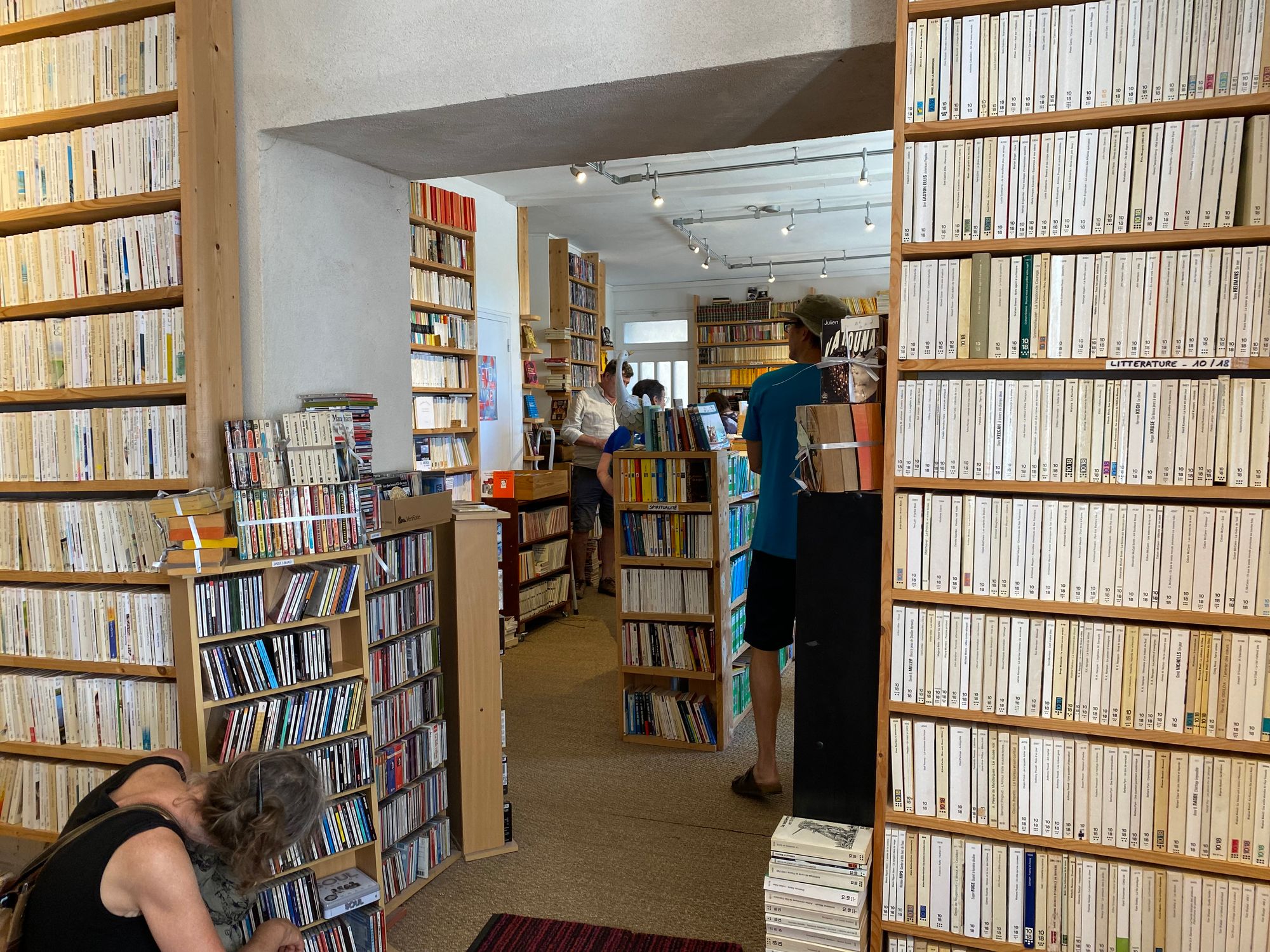 Up the road is Abraxas-Libris's paperback outlet, where we picked up a stack of Livre de Poche, Gallimard, and Penguin books—including several P.G. Wodehouses: