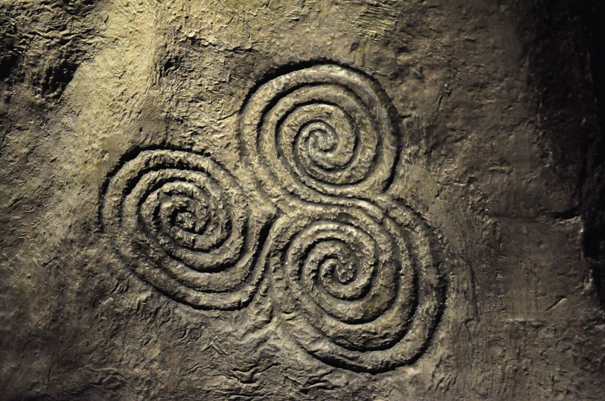 This lovely triple spiral shape, the triskel (also known as triskele or triskelion), counts among the most ancient artistic symbols. I first remember seeing the triskel in Ireland as a decorative element on jewelry and signs—and where the symbol was first carved on an inner wall of Newgrange, the 5,200-year-old passage tomb in the Boyne Valley. It's one repeated on ancient sites throughout the Celtic world, from Scotland to the Isle of Man to, yes, Brittany.