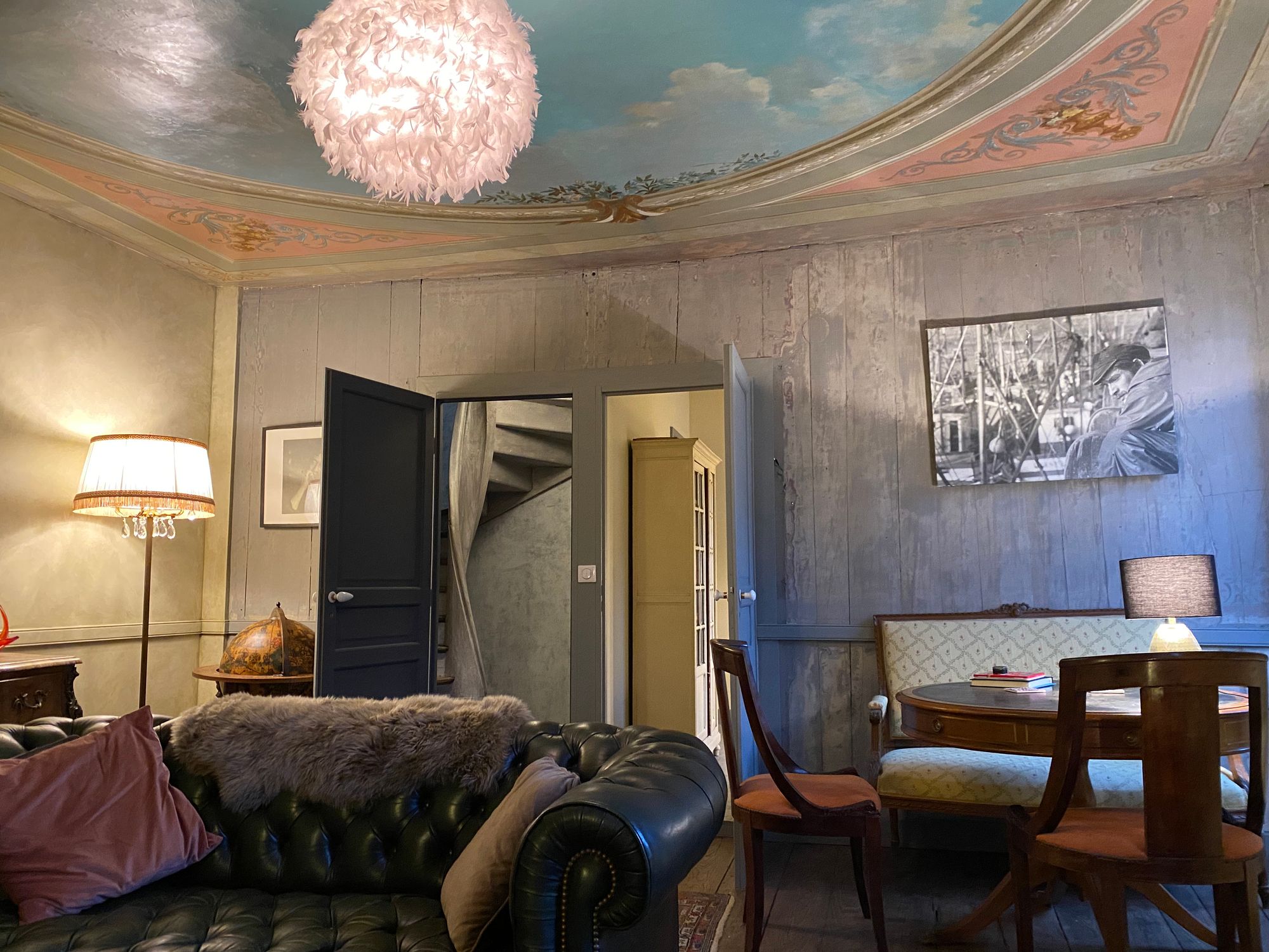 From the top of the France House looking down its staircase, you see two entwining spirals: a larger outer spiral of hand-carved oak steps descending counter-clockwise like neatly fanned wooden petals, and a beautiful inner spiral of a single wooden banister coiling down the height of three stories. The banister is a marvel of bespoke Old World carpentry, at least to Californians like us: it is perfectly carved from a single tree per floor. By the third floor, it stands about 25 feet, helpfully accompanying the 34 sanded, time-smoothed steps—which can seem slippery as a slide in sock-feet.