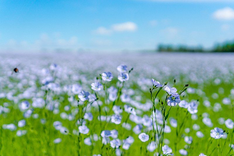 Why blue gold? Linen thread is spun from the fiber of flax plants, which look like this in flower: