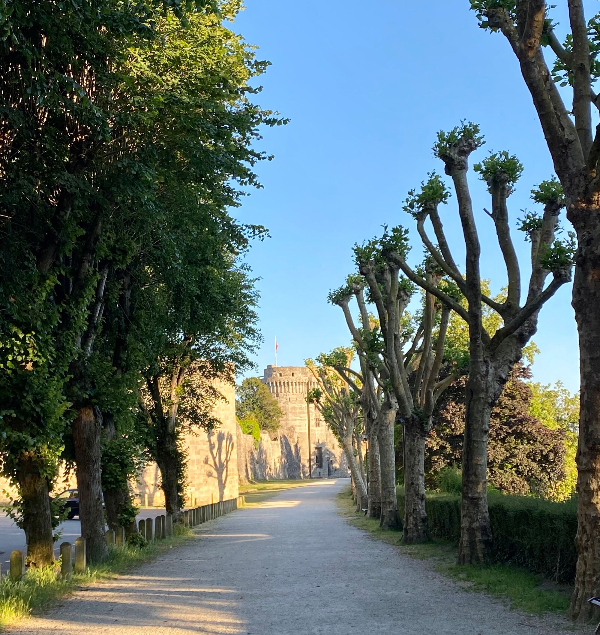 As the post's header image shows, Dinan played a role in the battles leading up to 1066—sustaining attacks by William the Conqueror—and so its ancient castle is featured on the Bayeux Tapestry. (Or as the end of that sentence reads to me: the Bayeux Tapestry!)